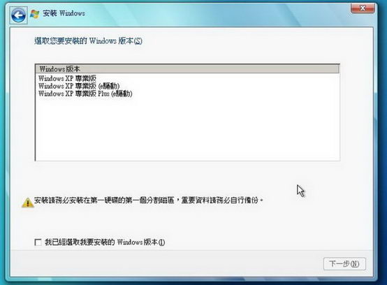 第一個版本是以 win7安裝介面封裝 之 New Windows XP Professional 2012