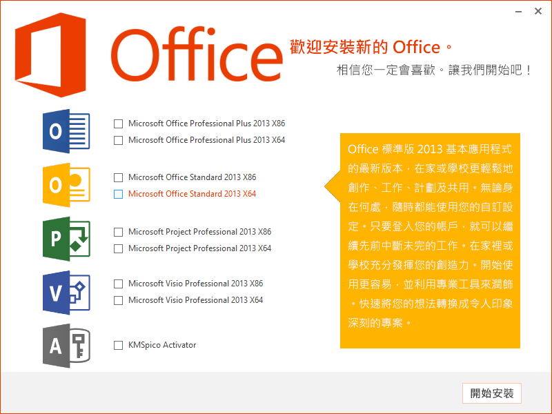 Microsoft Office 2013 Collection V2 X86、X64雙位元 (內含Professional Plus Standard Project Professional Visio Professional) 繁體中文版(DVD一片裝)